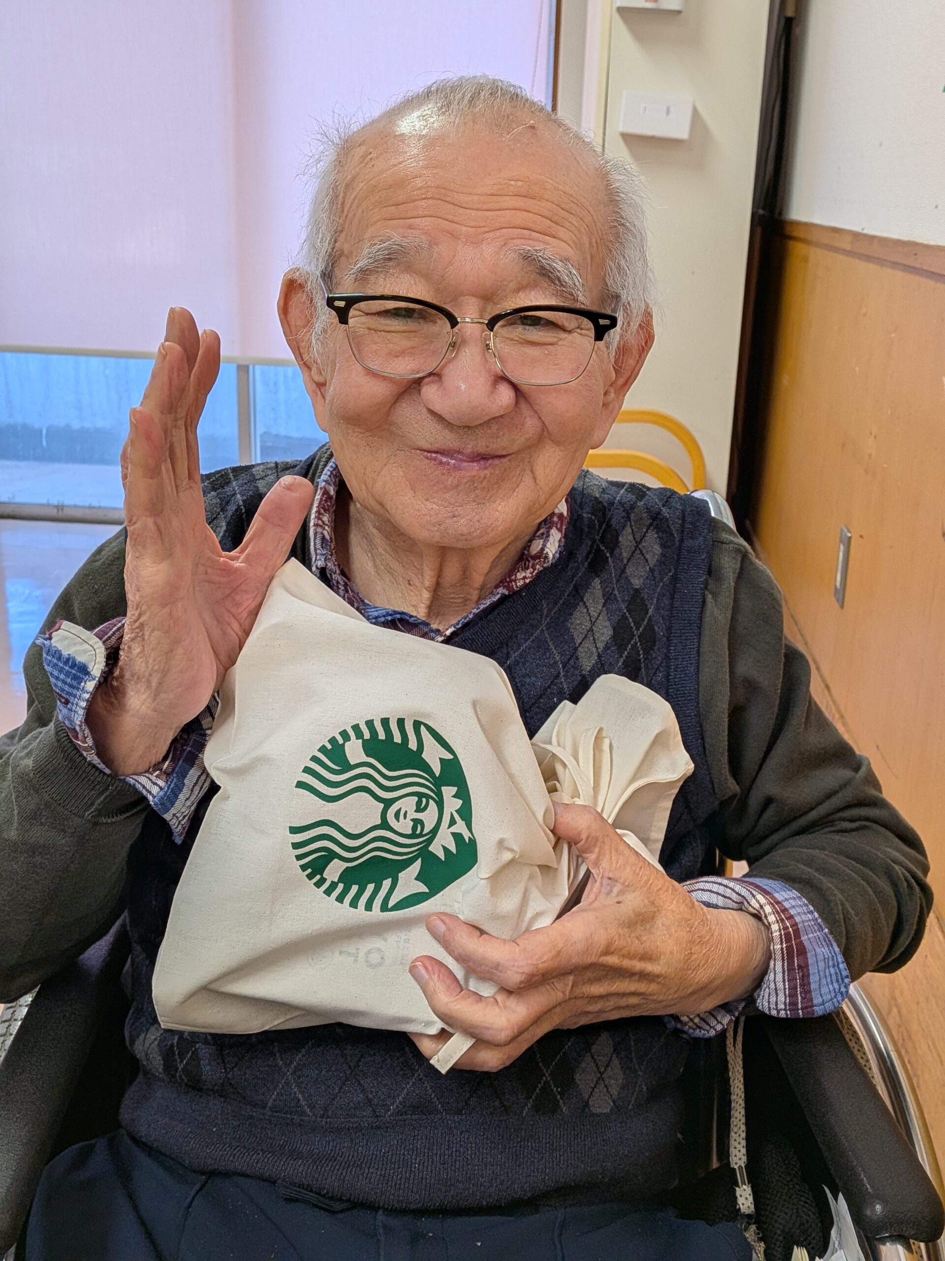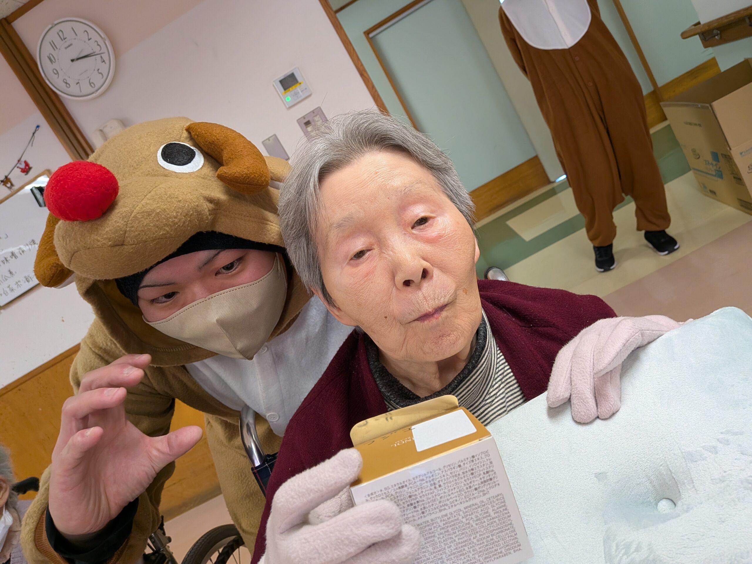 利用者の方は最初なんのことか分からず無反応でしたが、名前を呼ばれ、プレゼントを一人一人渡されると「ありがとう!」と大喜びでした。