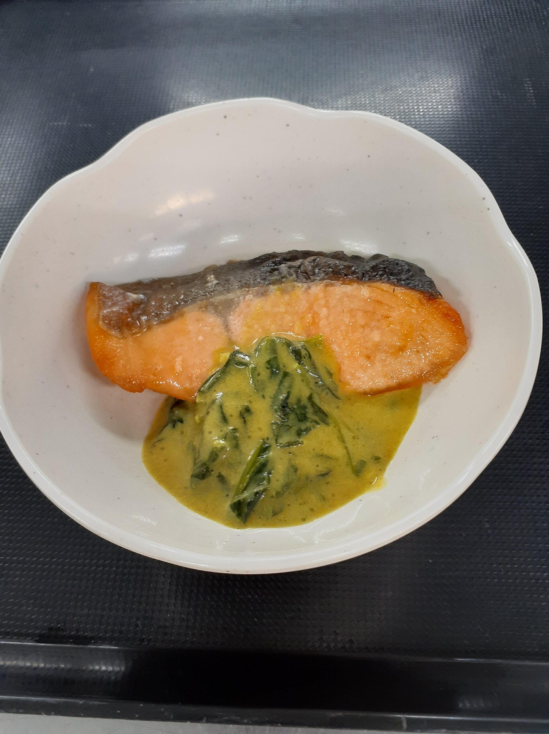 希望館の食事 栄養課2023.12.14 鮭のカレークリーム煮 冬に向けたこれからの時期にピッタリな体あたたまるメニューです! 旬の秋鮭やほうれん草は、カレーのスパイシーな風味とも相性抜群ですよ。 栄養課 希望館の食事一覧へ