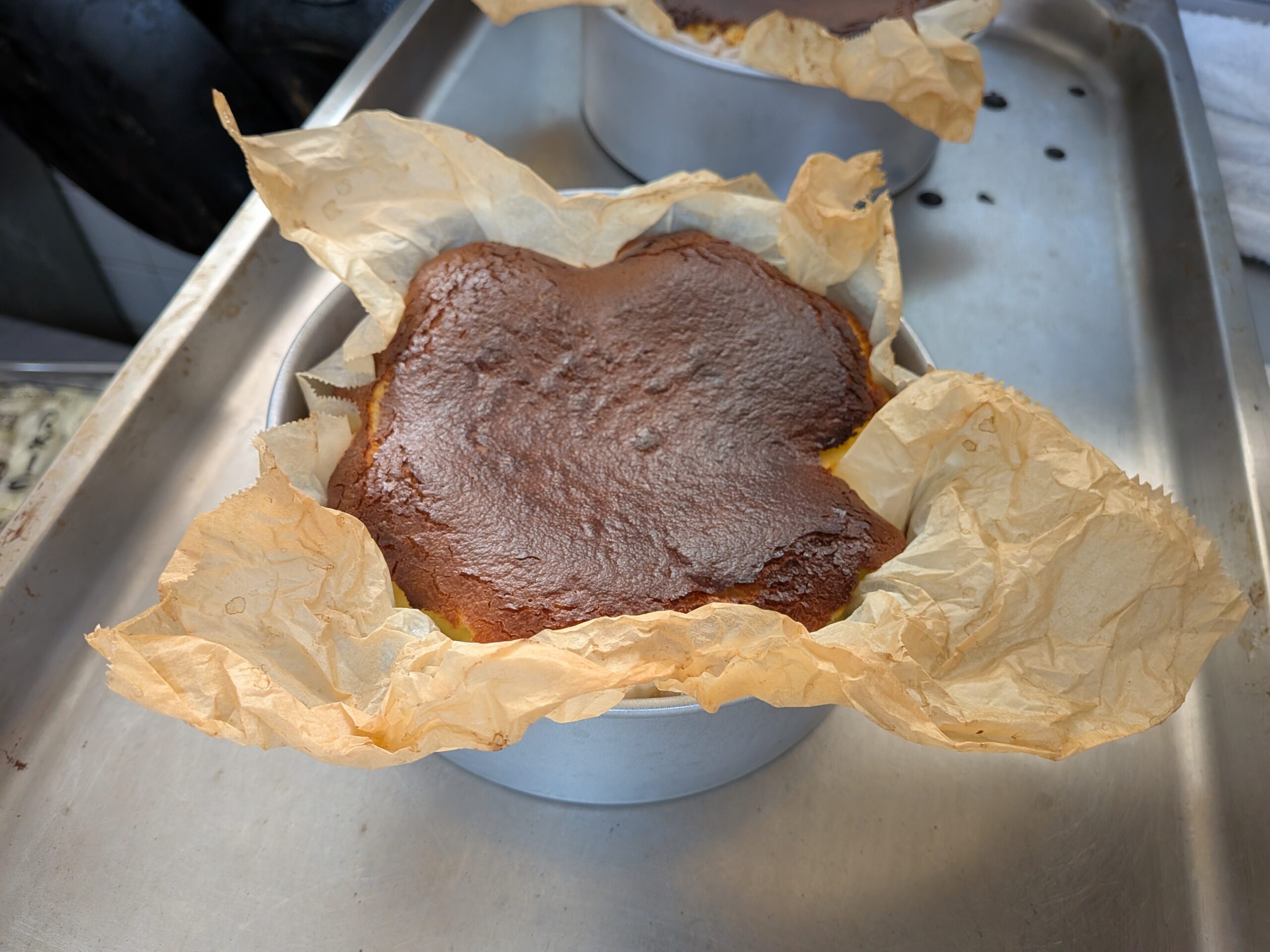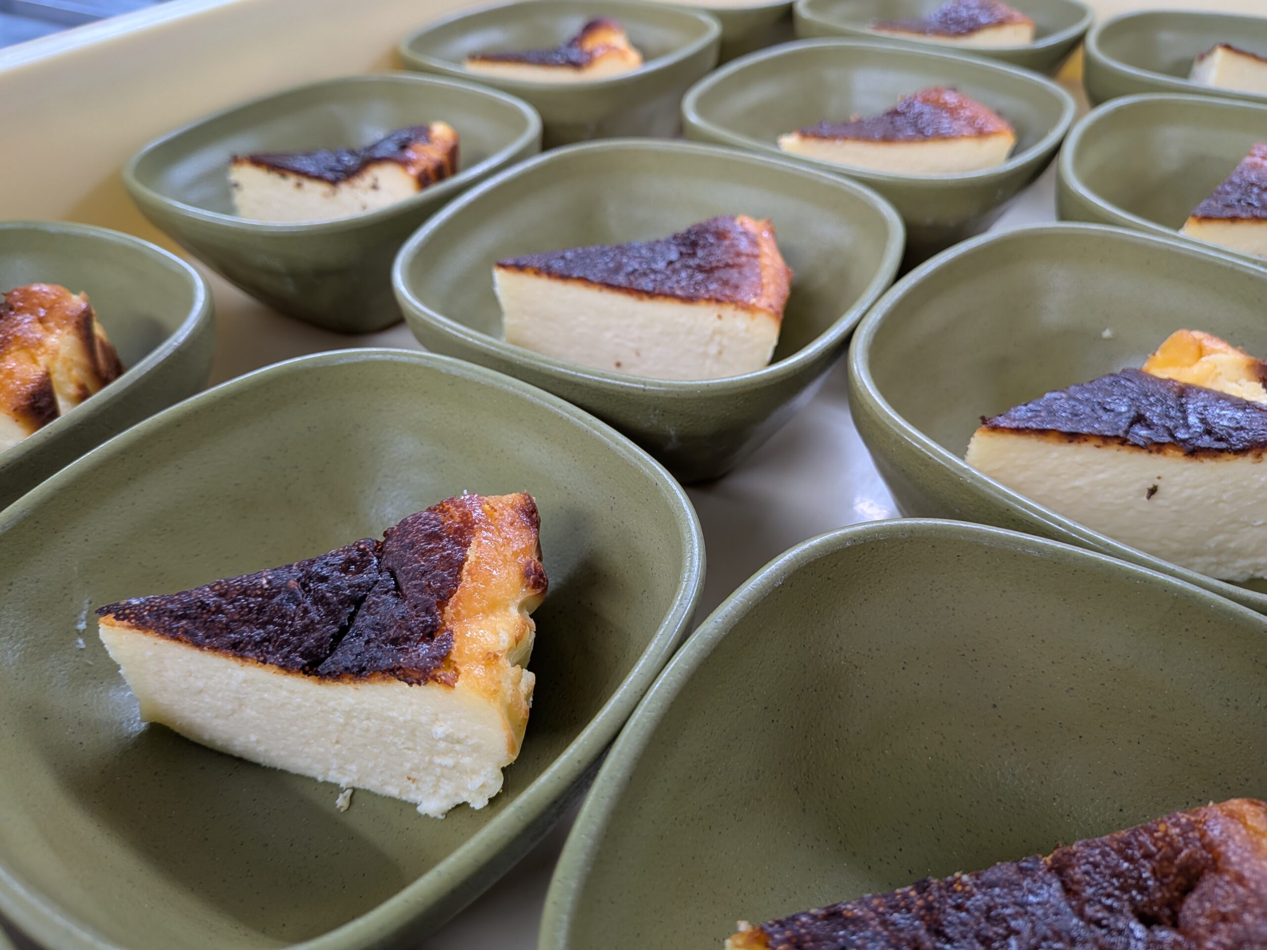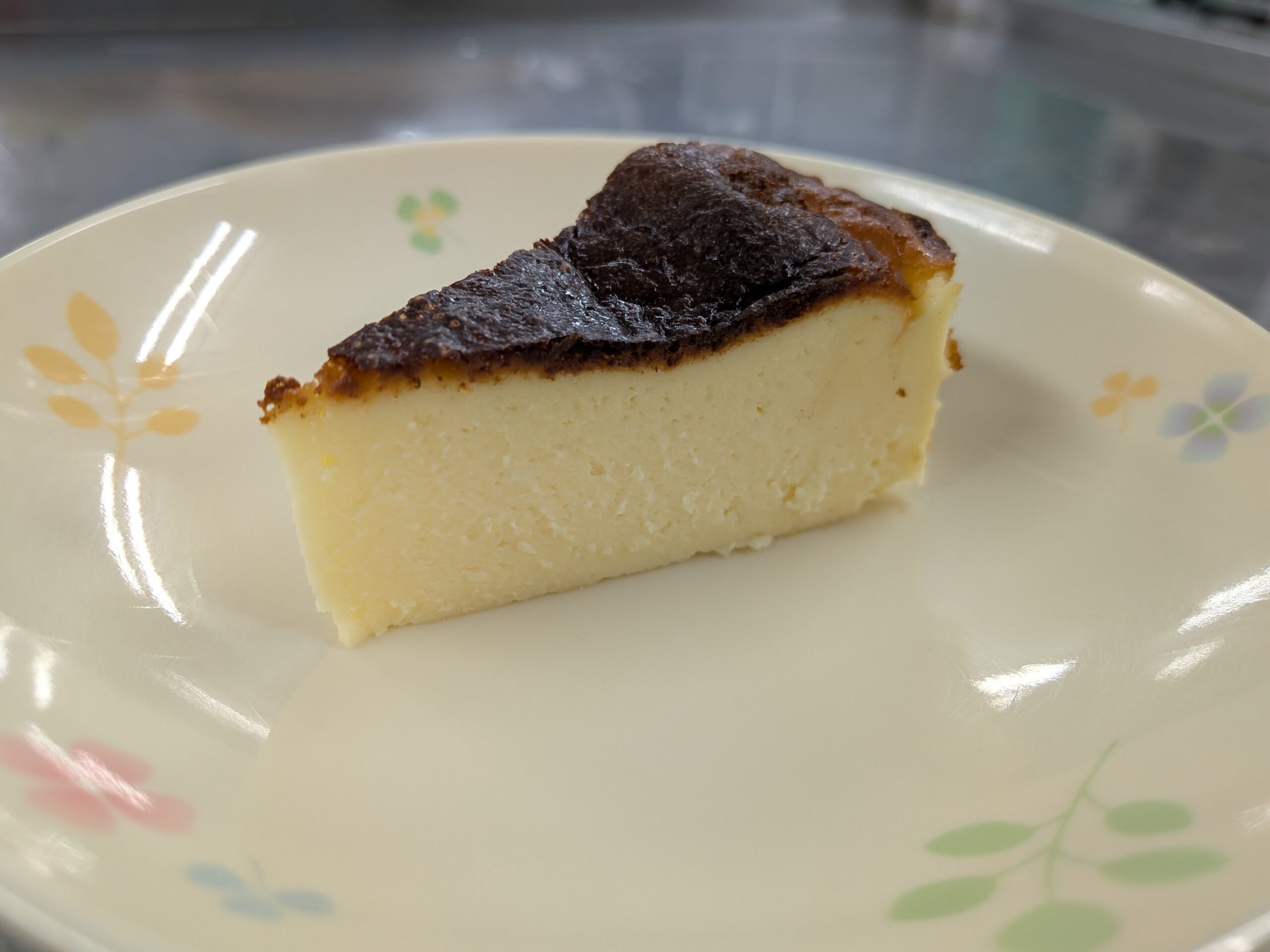 希望館の食事 栄養課2026.02.25 手作りおやつ♪バスクチーズケーキ 中はしっとりとしたとろとろのレア食感がたまりません!高温短時間焼くことでできるバスクチーズケーキ特有の焦げ目も香ばしくて美味しいですよ。濃厚クリーミーな味わいでご利用者の皆様にも笑顔が見られました。 栄養課 希望館の食事一覧へ