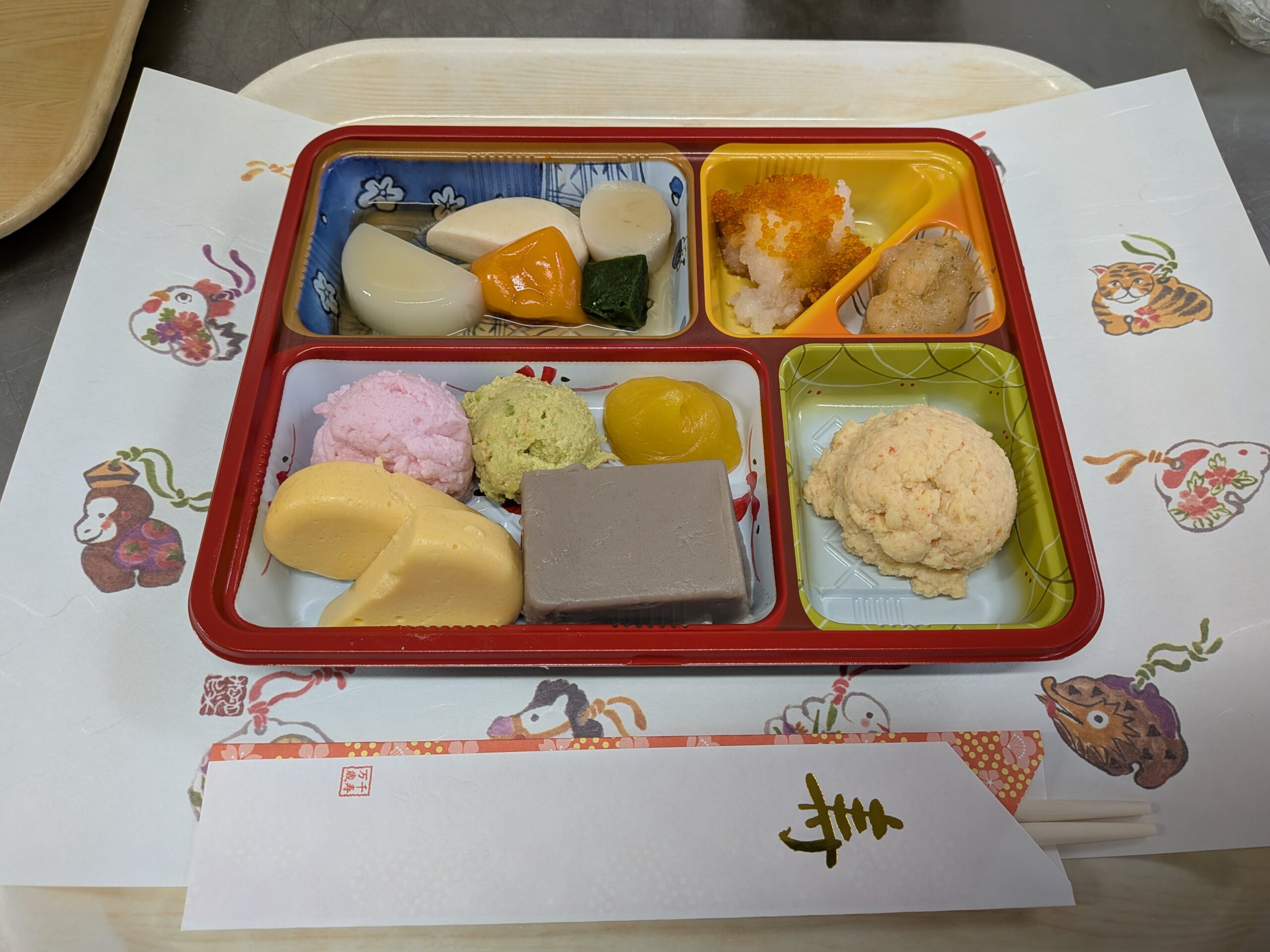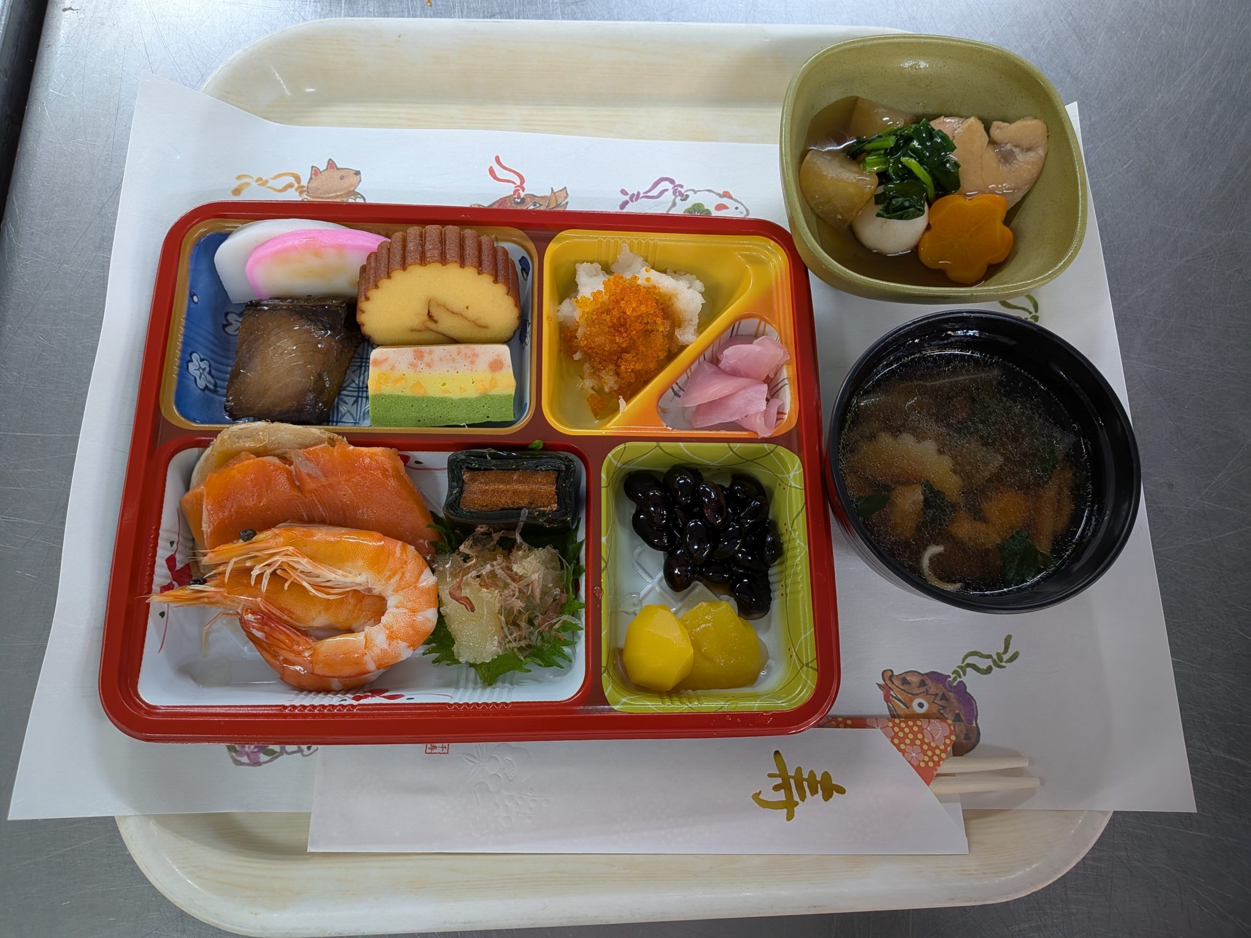 希望館の食事 栄養課2026.02.25 おせち料理 おせち料理は一品一品に様々な意味が込められており、家族の繁栄を願うものばかりですね。 おせちを目の前にしたご利用者様は、「わぁすごい!おいしそう!」「豪華だね」と、声が上がっていました。 2026年も皆様の健康を祈って美味しい食事を届けたいと思います。 栄養課 希望館の食事一覧へ