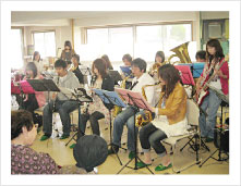 ケアハウス入居者の方々やデイサービスのご利用者、老人ホームの入所者の方々など会場に足を運び、吹奏楽の演奏を間近で楽まれました。演奏される曲も「上を向いて歩こう」やディズニーメドレー他、親しみのある曲を学生の皆さんが用意してくれました。曲と曲の間には、学生さんからお年寄りに演奏する曲目の説明をしてくれたり、いろいろな楽器の特徴を話してくれたりと、お年寄りとのコミュニケーションをとりながらのひとときもありました。
