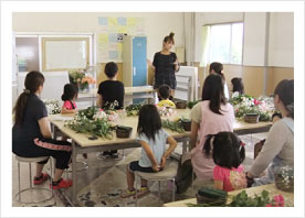 6月24日、児童養護施設希望館で国際こども花基金(フラワールド)のボランティアによるフラワーアレンジメントを体験させていただきました。色とりどりのお花の茎を斜めに切って、バスケットの中の水を含んだスポンジに差していきます。子どもも大人もはじめての体験で、目をキラキラ輝かせながら約一時間集中して自分の作品を作り上げました。子どものセンスが光り、見たことのない意外な一面を垣間見ることができました。いくつかの独創的な作品たちに囲まれてふと気づくと、ほんわり癒されていました。お花のパワーってすごいですね。