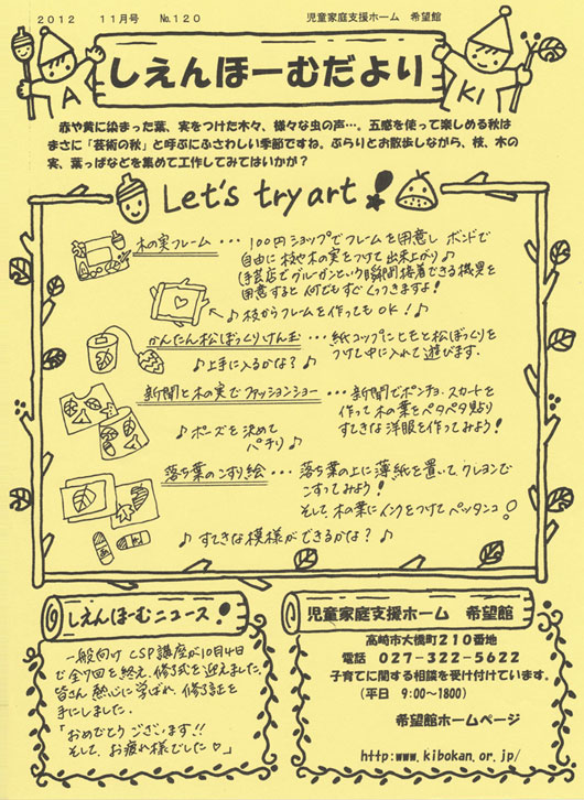 また、10月28日(日)高崎市のコアホールにて開催される「たかさき地球市民環境会議2012」で、塚沢小学校はエコキャップ収集を始めとした、環境活動を発表します。その中で、希望館が「エコキャップ収集の協力をしている地域の社会福祉法人」として紹介されることになりました。