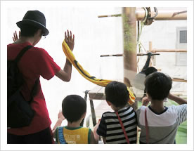 23日は小平親水公園、桐生が丘動物園に行きました。台風一過で快晴!出掛けるには最高の天気でした。親水公園では子どもたち全員水着になり、水を掛け合ったり追いかけっこをして楽しみました。桐生が丘動物園では、普段本やテレビで見ている動物たちを目の前にして、子どもたちは大はしゃぎ!特に、猿山が人気で、年中のJくんは「お猿さん、かわいい。」「お猿さん、こっち見てー」と食い入るようにニホンザルやクモザルを観察していました。他にも、日本最高齢のゾウ、ライオンやワニも見ることができ、子どもたちは大満足でした。