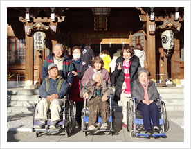 新年には、前橋にある上野総社神社と高崎にある進雄神社へお参りに出掛けました。去年の参拝時にも居たネコは「今年もいたねー!」と人気で、ご利用者様に福を招いてくれました。今年1年を祈願し、皆様と良い年を迎えることができました。