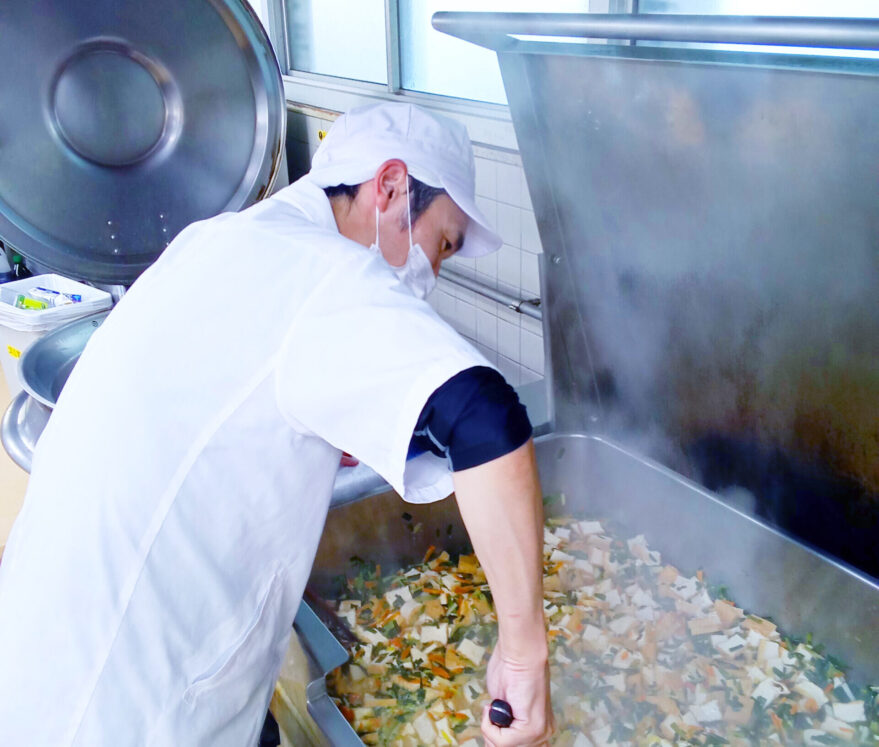 お一人お一人に合った調理法で食べていただきたく、野菜を細かくしたり、柔らかくしたり、食べやすい食事を作っています。またミキサーにかけより細かくした食事などもあります。食材も家庭ではあまり用いない季節の食材を扱うこともあるので、新鮮な気持ちでチャレンジできます。試行錯誤の末作った食事をご利用者さんに喜んでいただけた時は最高の喜びです。それがやりがいになって自分を成長させてくれています。心遣い、思いやりを食事に込めご利用者さんの笑顔を求めて日々食事作りをしています。