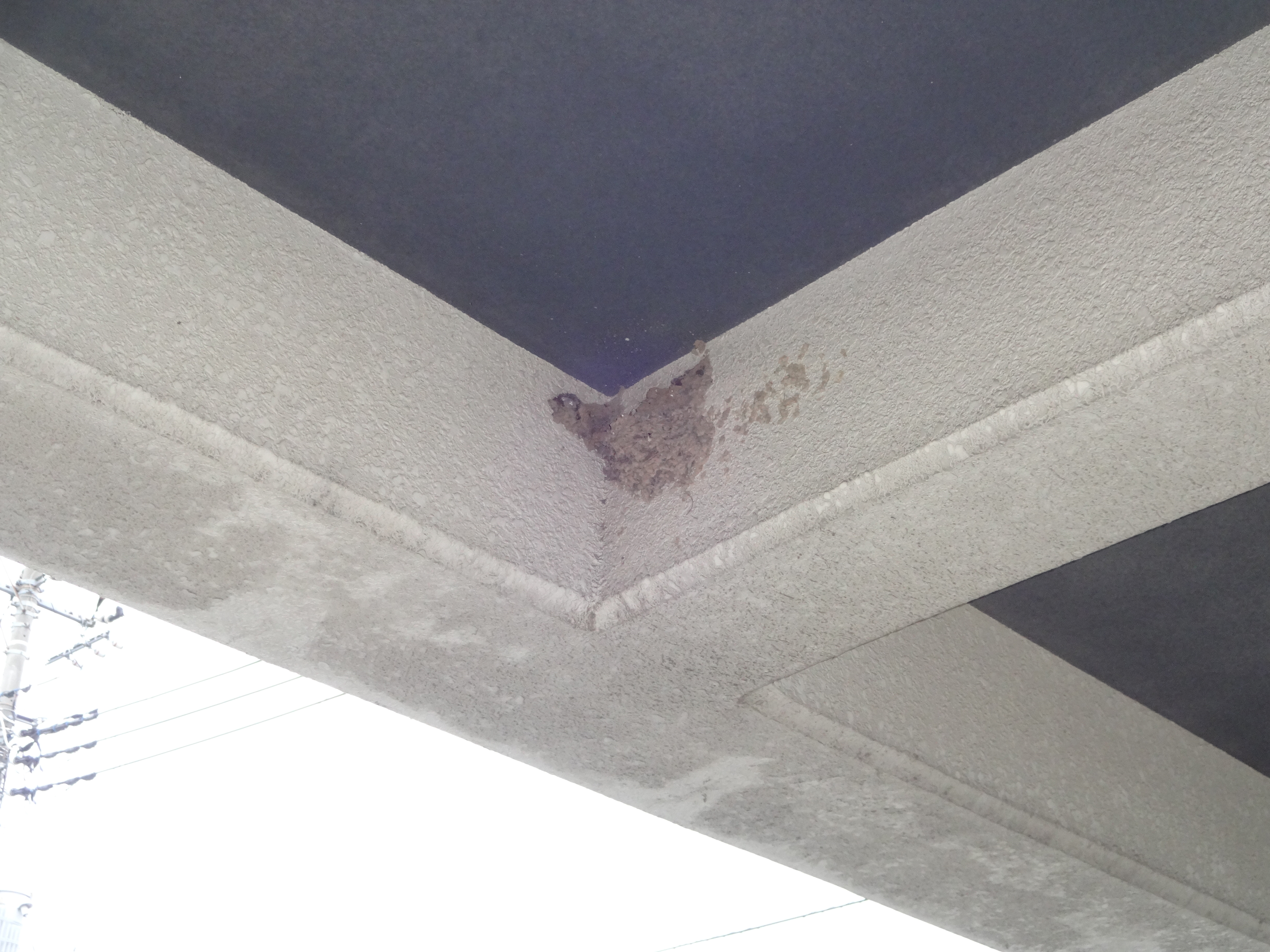 正面玄関の車寄せの上に巣を作りました。