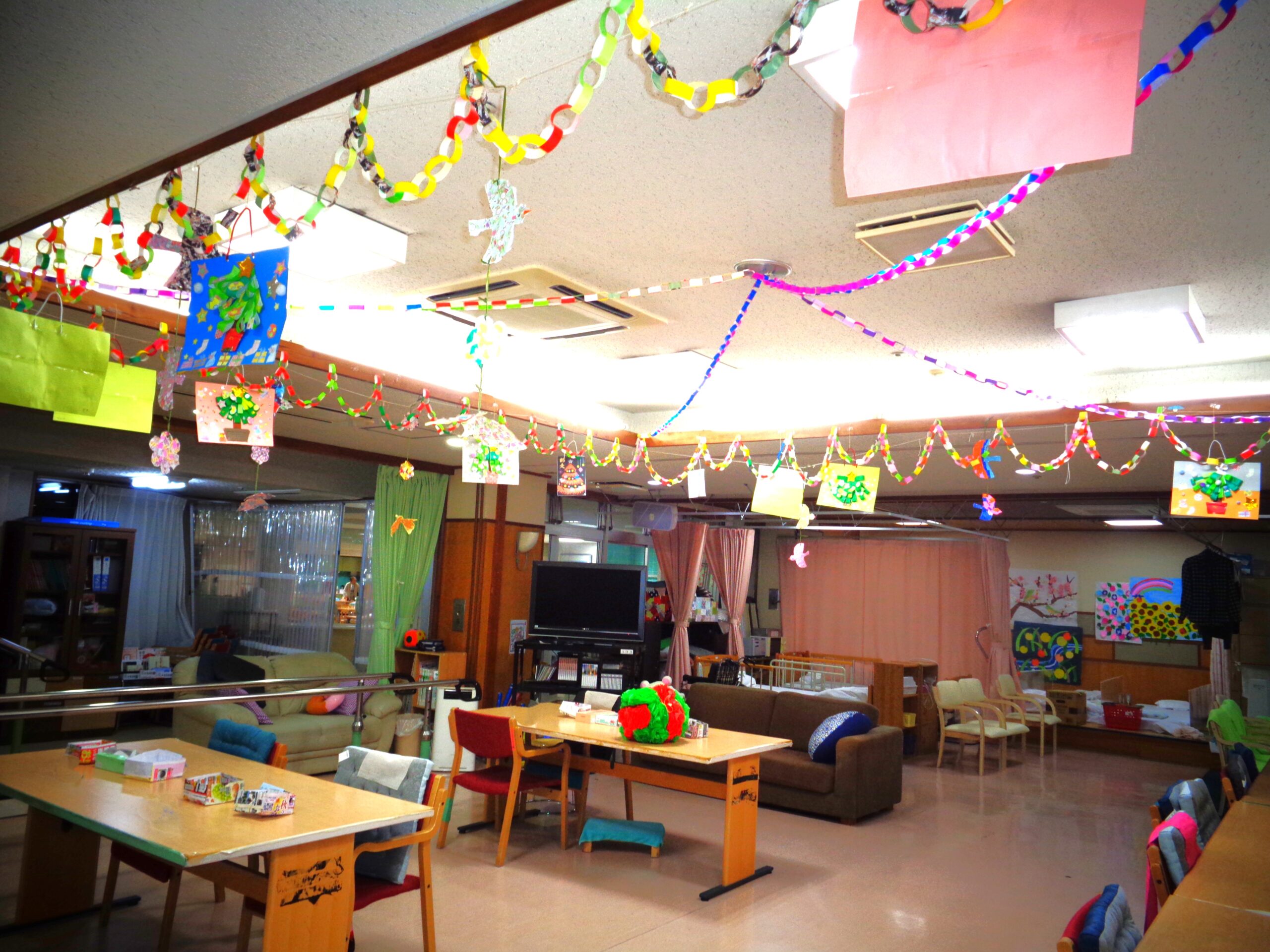 ご利用者と一緒にクリスマスツリーの飾り付けを行い、輪飾りで天井を彩り、フロアがクリスマス一色となってとても賑やかになりました。ご利用者も喜んでくださいました。