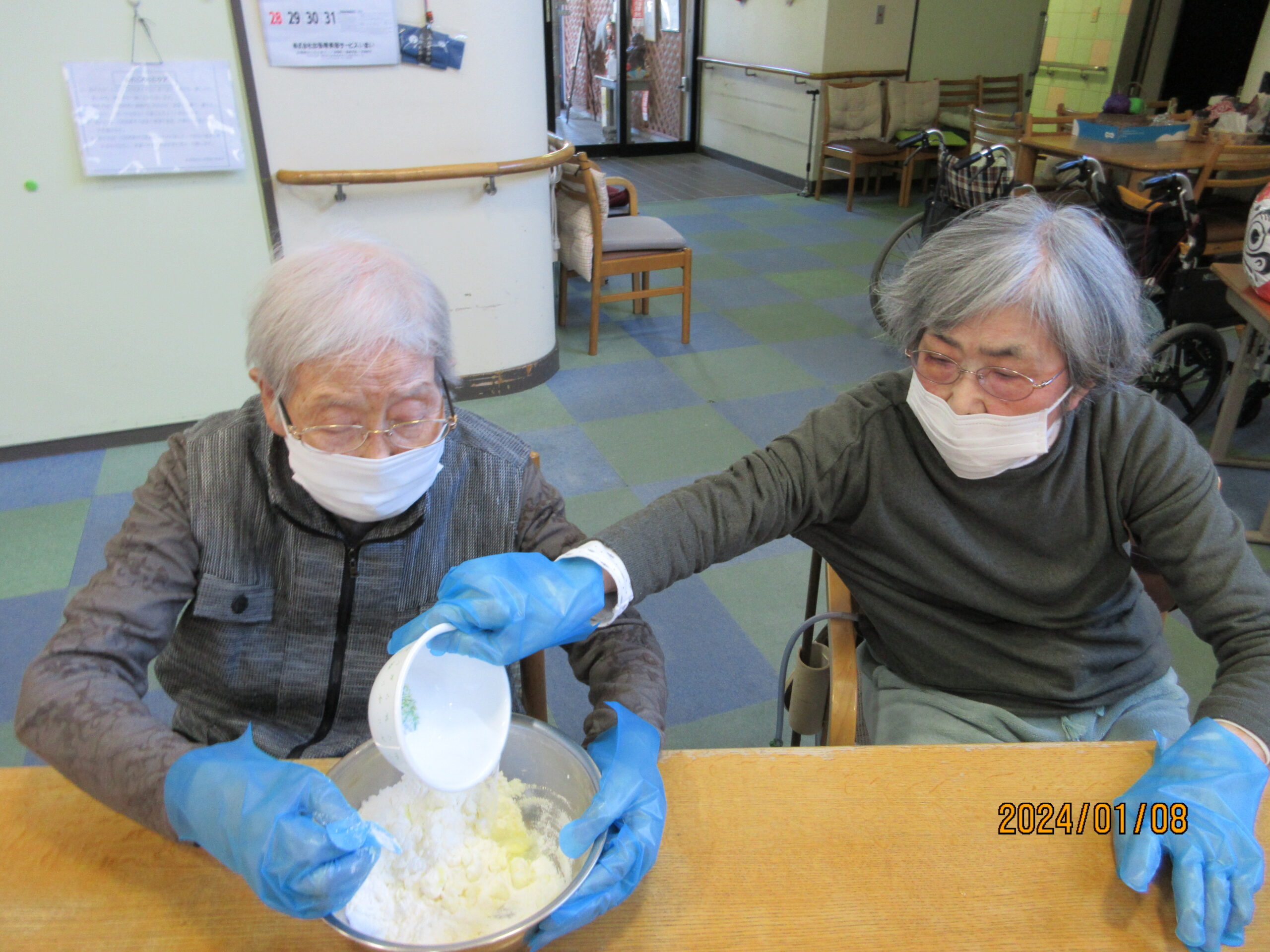 皆様とても上手に丸めていました。木に飾るのが目的ですが、沢山作ってあんこやみたらしのたれをかけ、おやつに頂きました。また、鏡開きには、お汁粉も作りました。とても美味しくできました。ごちそうさまでした!