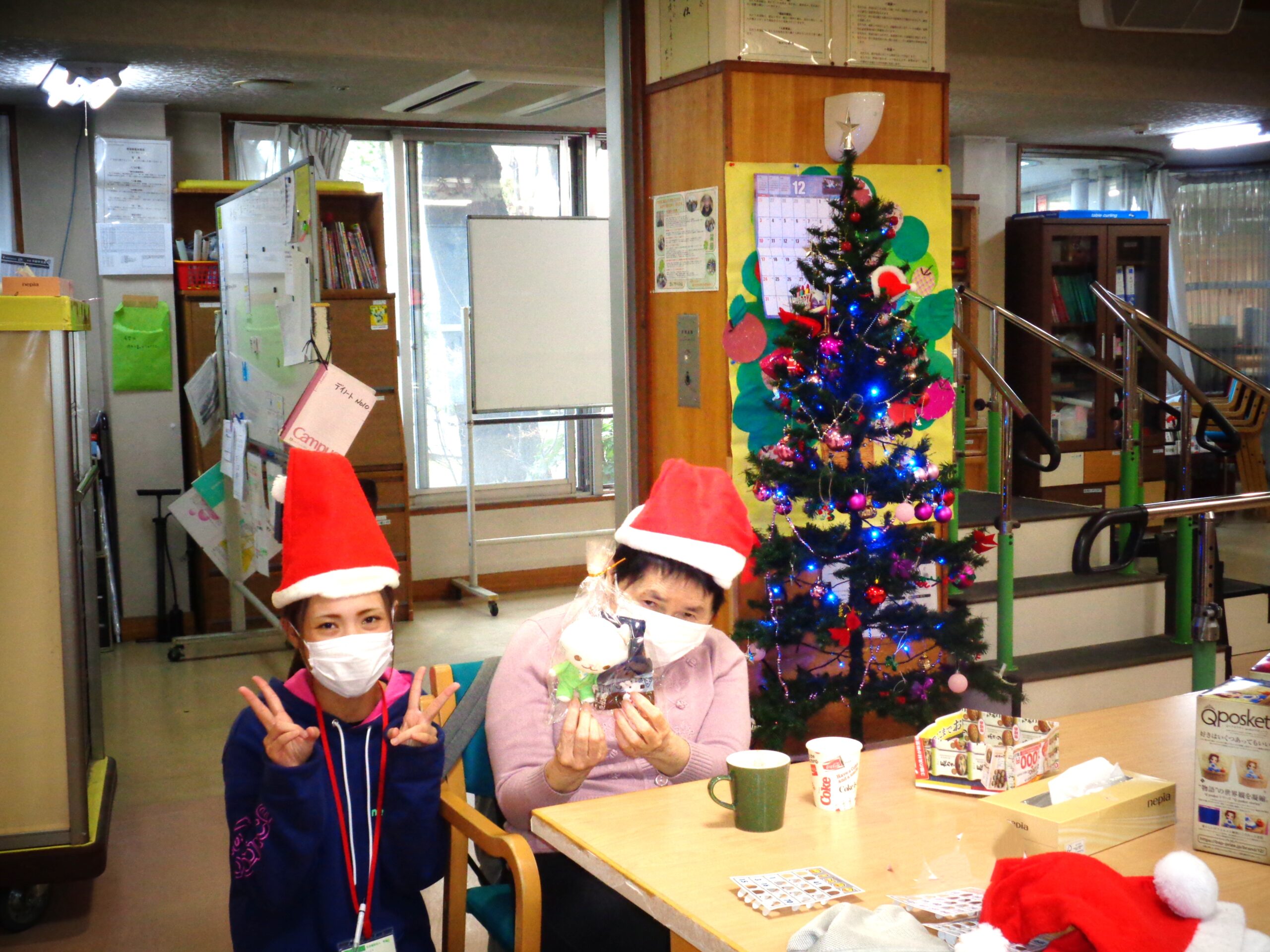 23日(土)と25日(月)にクリスマス会をしました!ツリーを点灯させて、クリスマスソングを流し、サンタの帽子や衣装も身に付けました。ゲームは体を使うものと、頭の体操となるものを選びました。いつもと違う雰囲気に、わくわくしながら楽しく過ごすことができました!