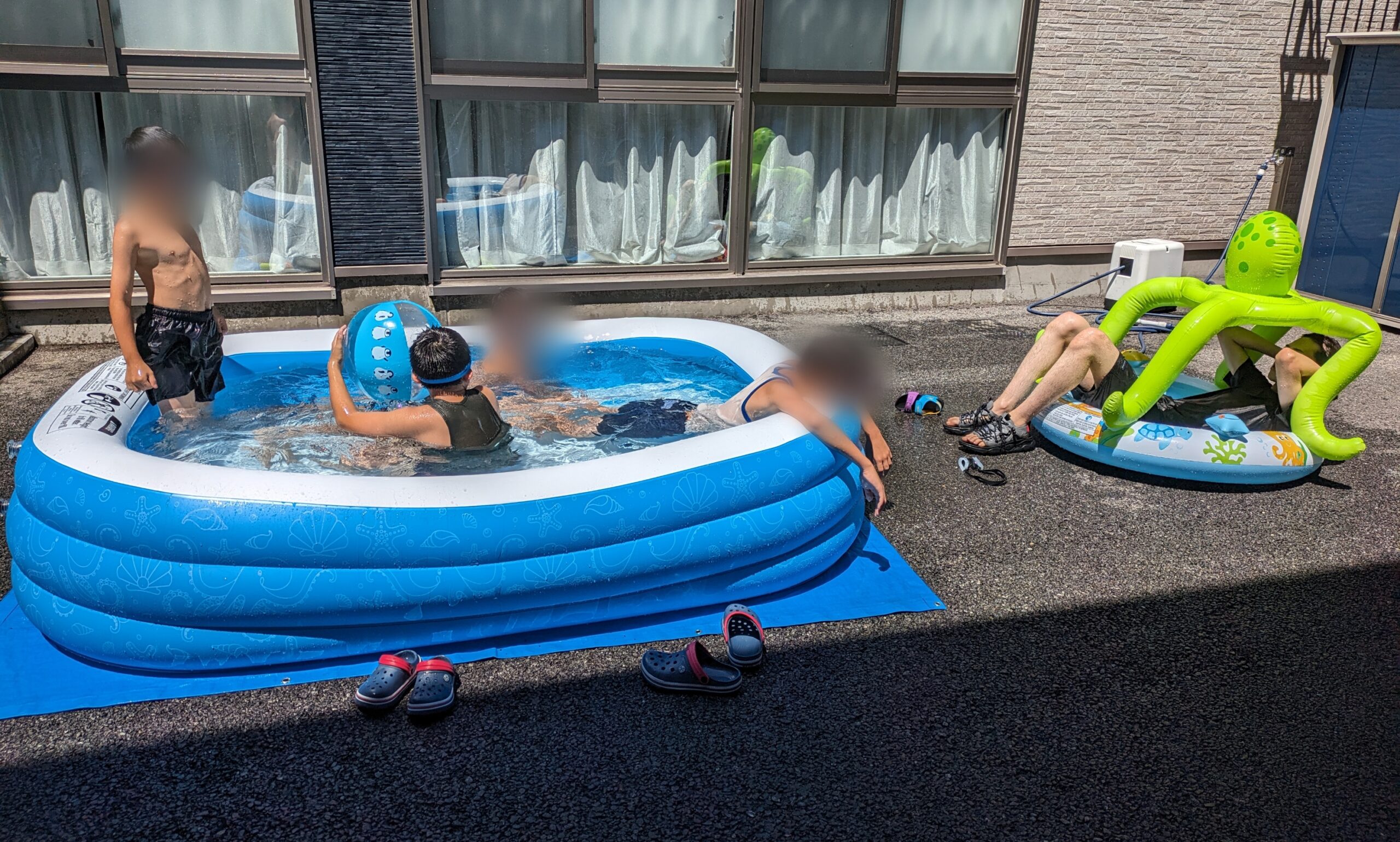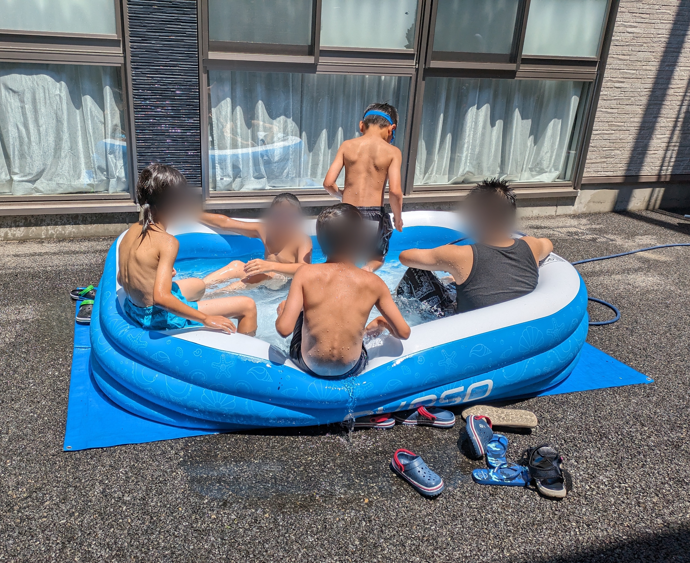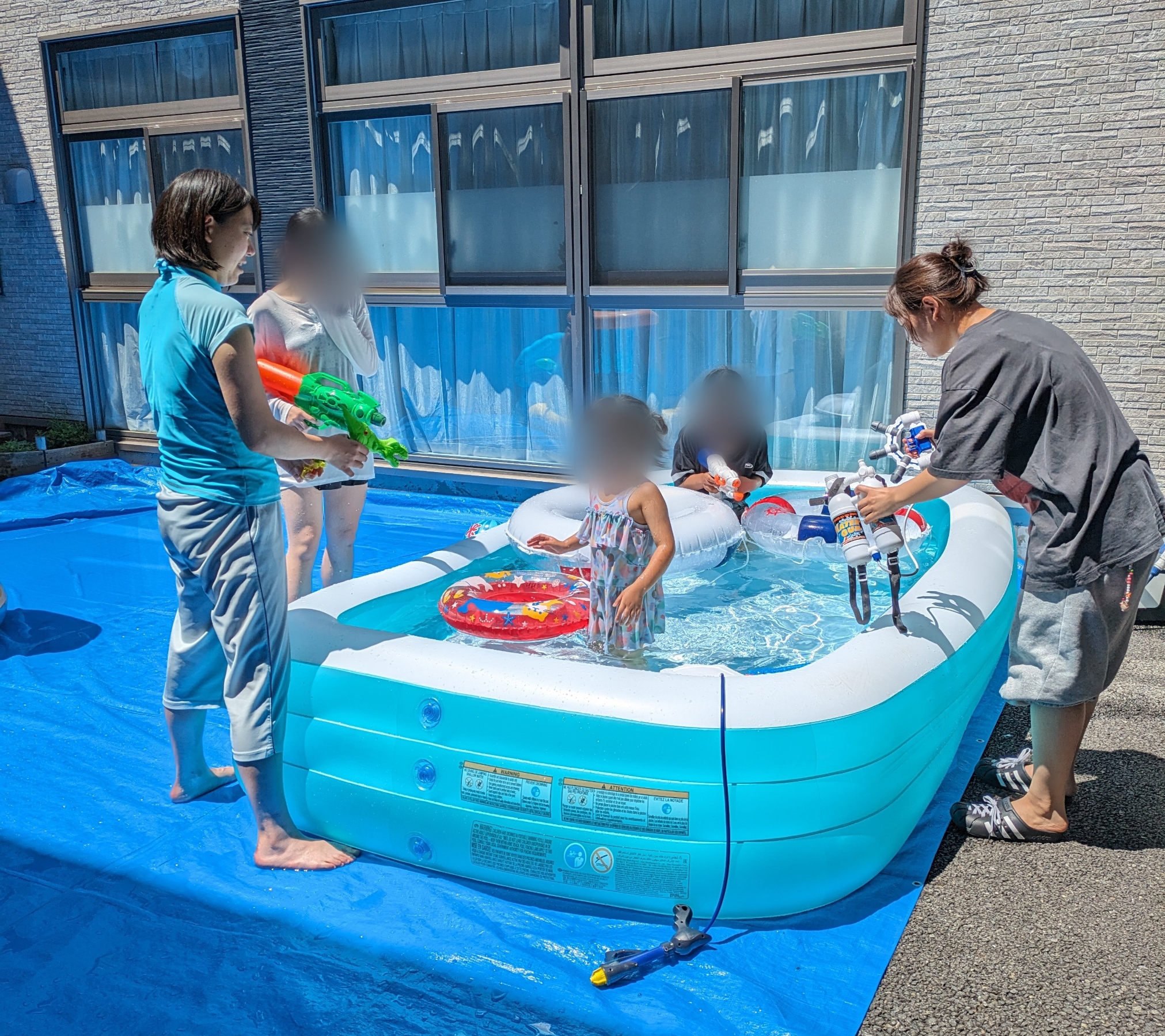 夏休み恒例、中庭でのプール遊びです♪