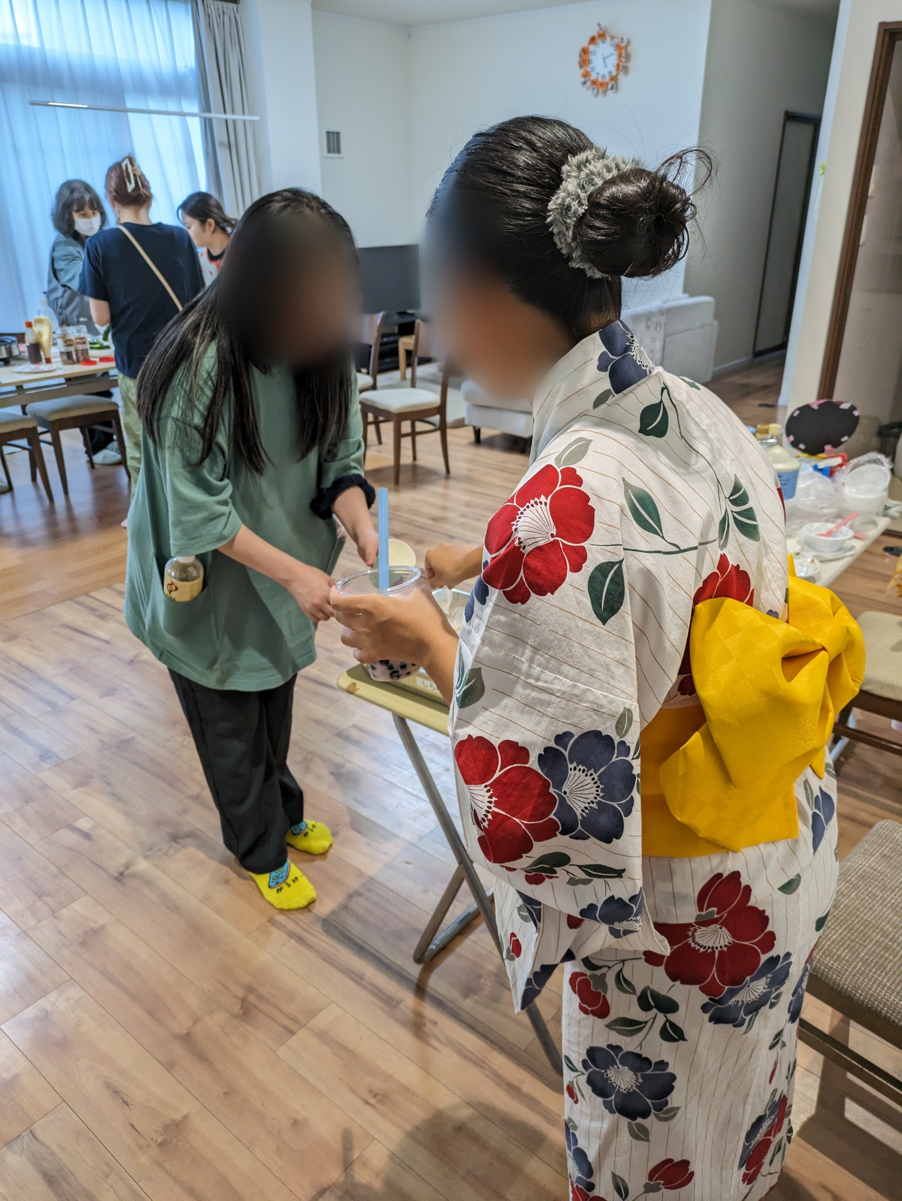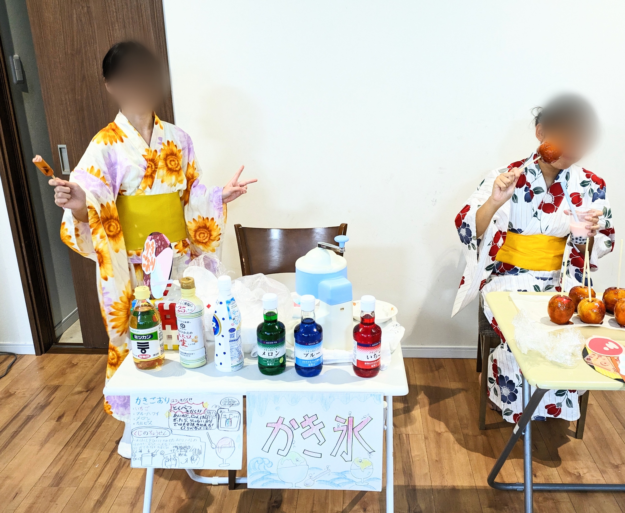 しらゆりユニットの子どもたちがどんなお店を出そうか考え準備もみんなで行って、事務所の職員を招待してくれます。りんご飴やミカン飴、かき氷、タピオカミルクティー、お好み焼きにフランクフルト…と大サービスです。美味しくてお腹がいっぱいになるほど振る舞ってもらいました。