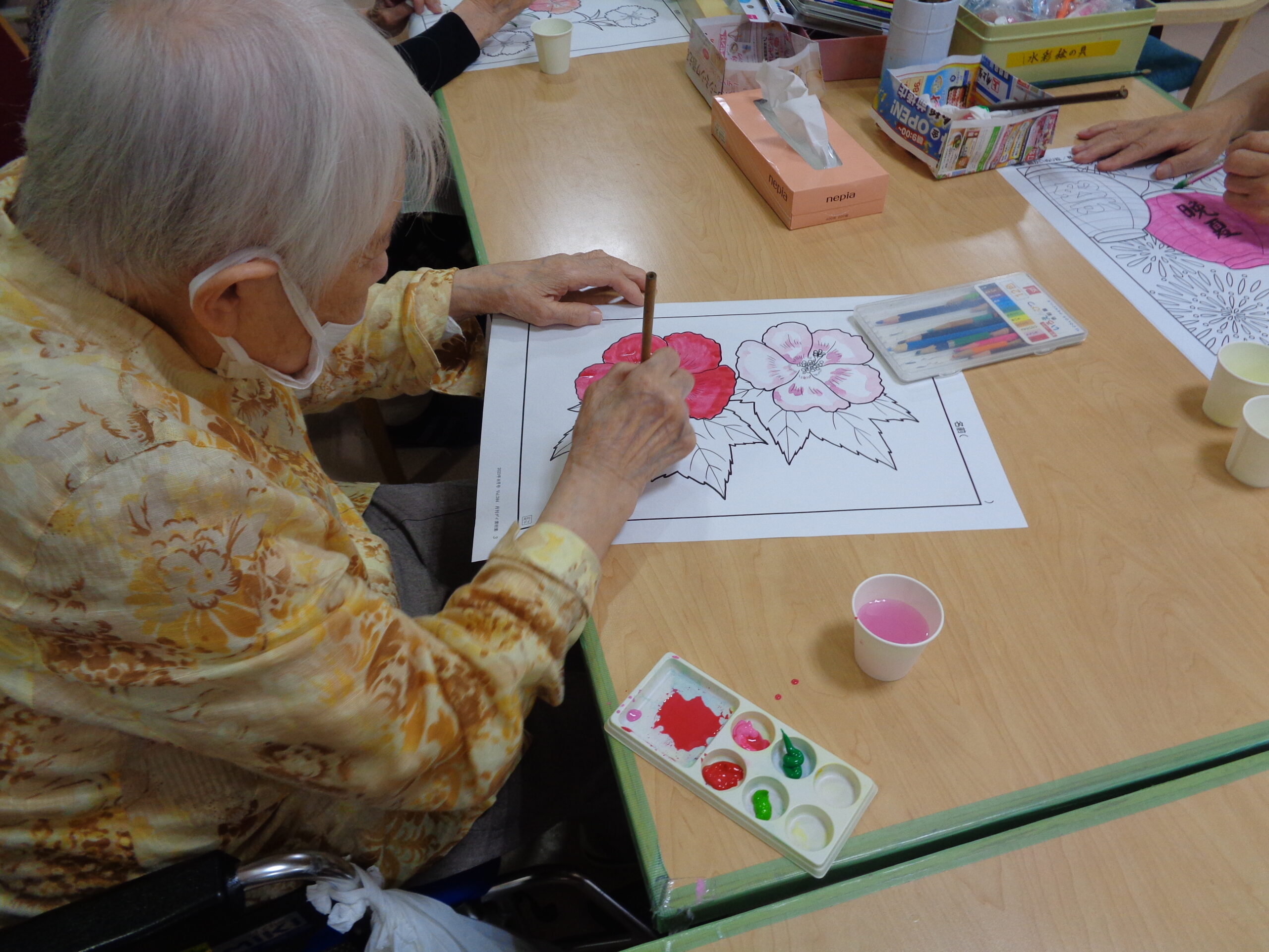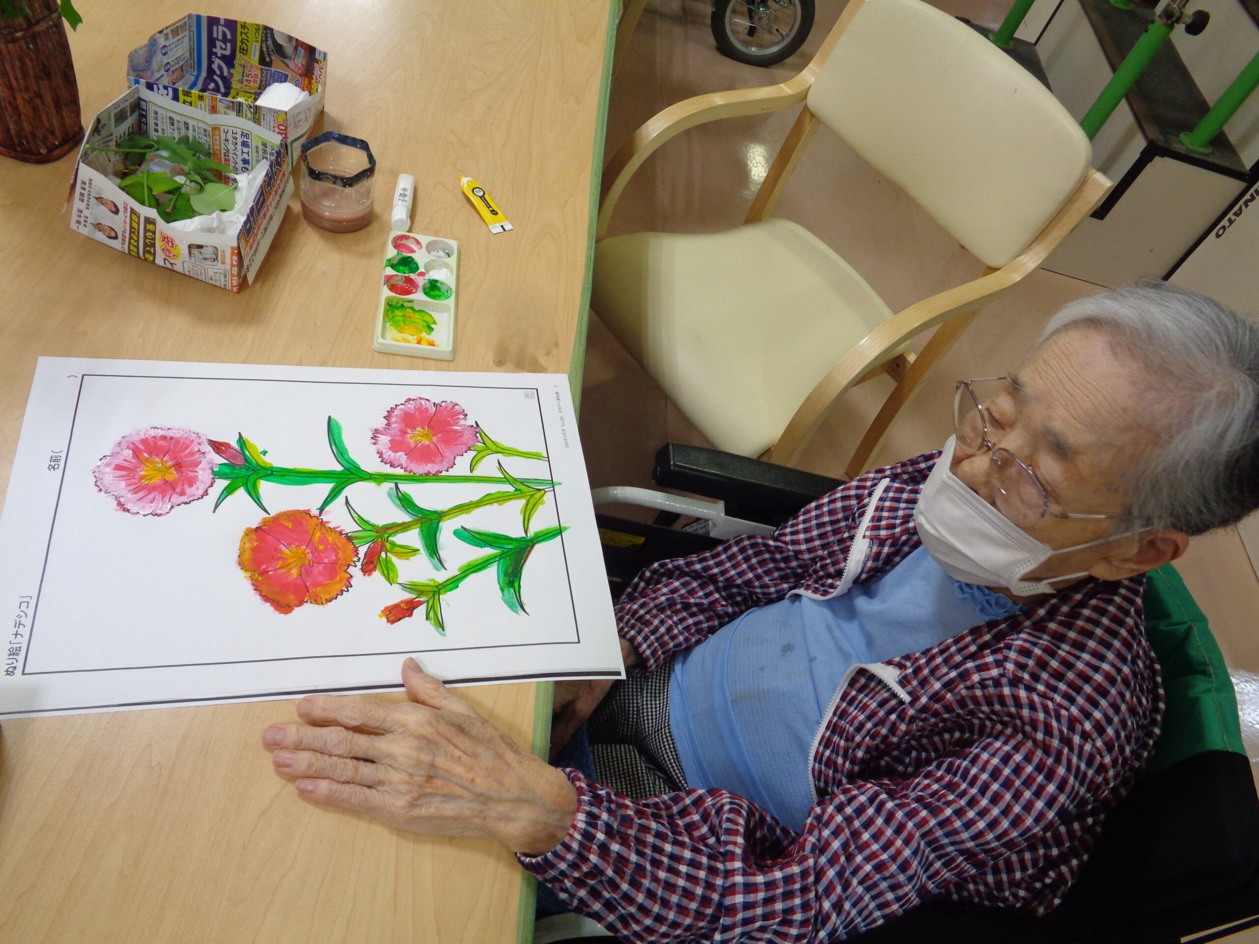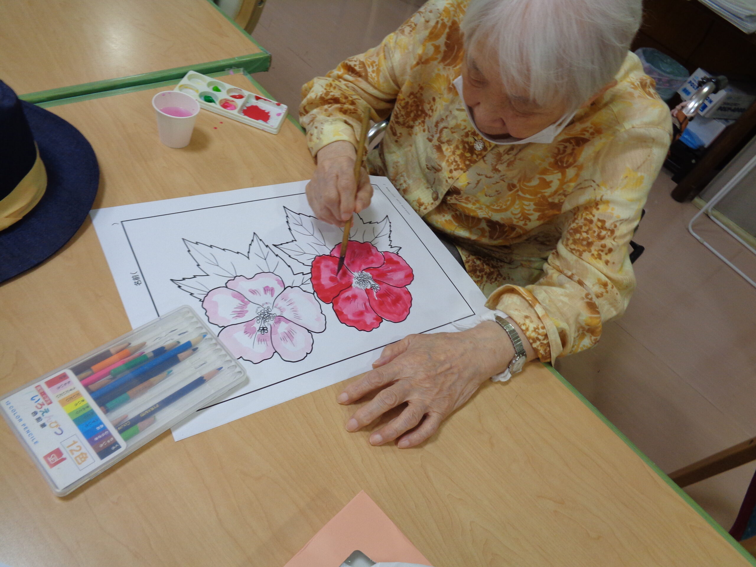 久しぶりに水彩画をしました。出来上がりの素晴らしさを見てご利用者の皆さんの才能にびっくり‼