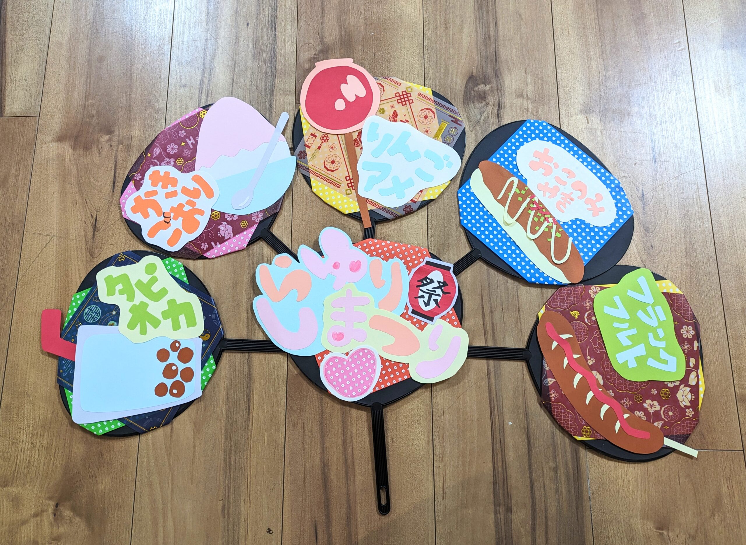 出店のうちわは、W先生が子どもたちのために作成したものです。