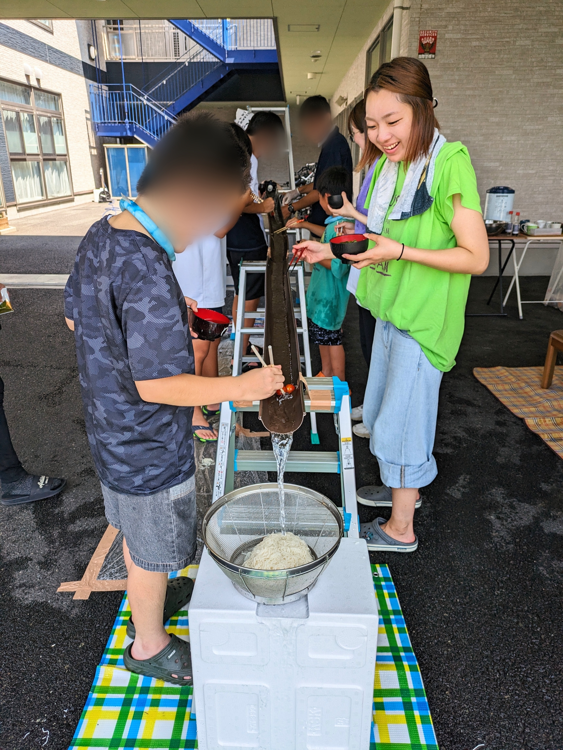 「そうめん流すよ~!」「わぁ、行っちゃったぁ💦」「トマトが来た~!」「わぁ、すべった!」と、賑やかな声が響きました。