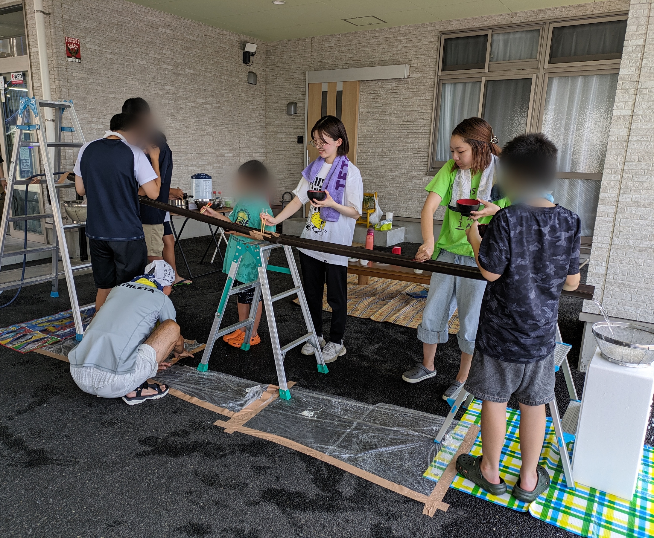あすなろユニットでは、今年も流しそうめんを楽しみました。