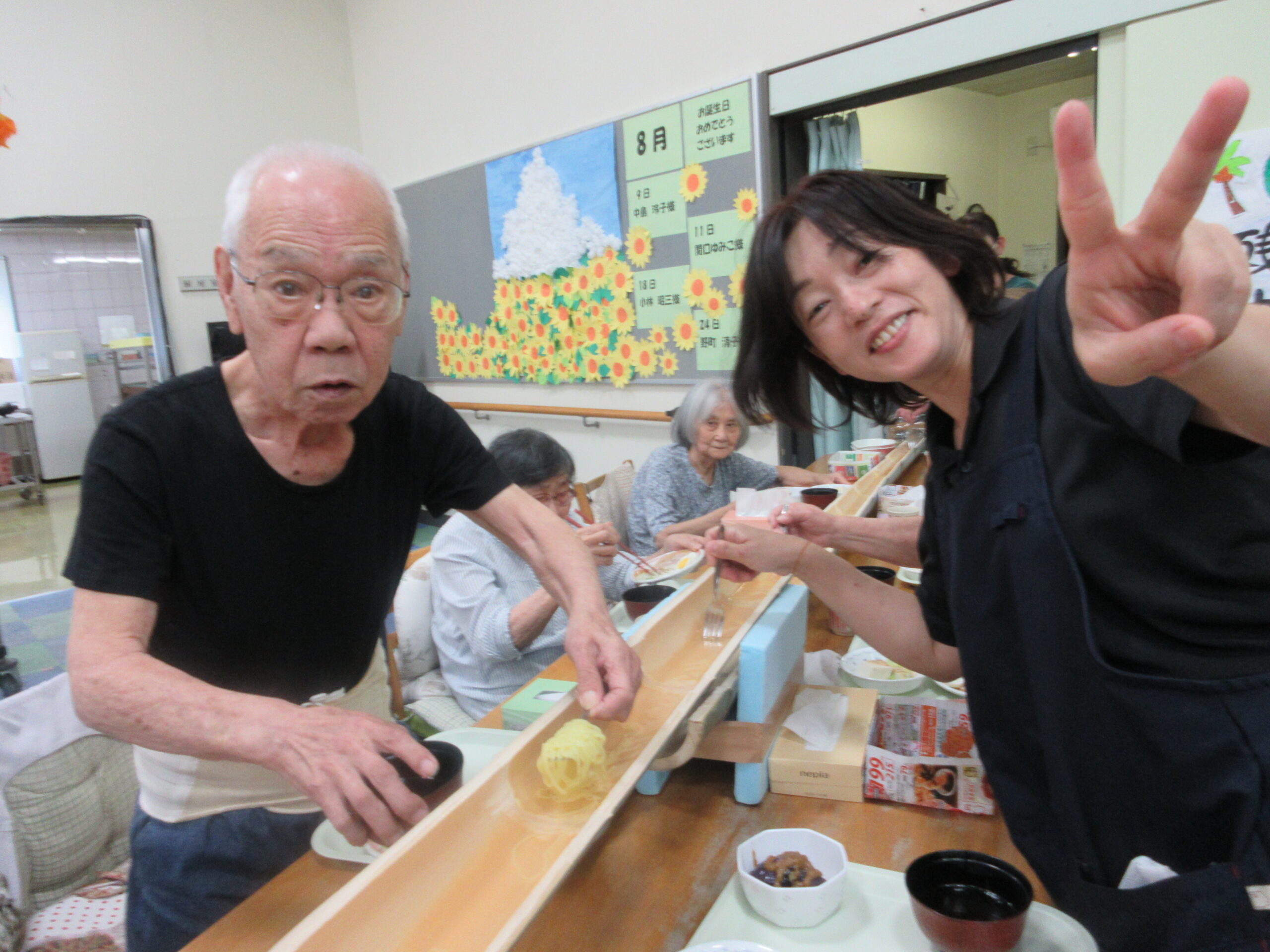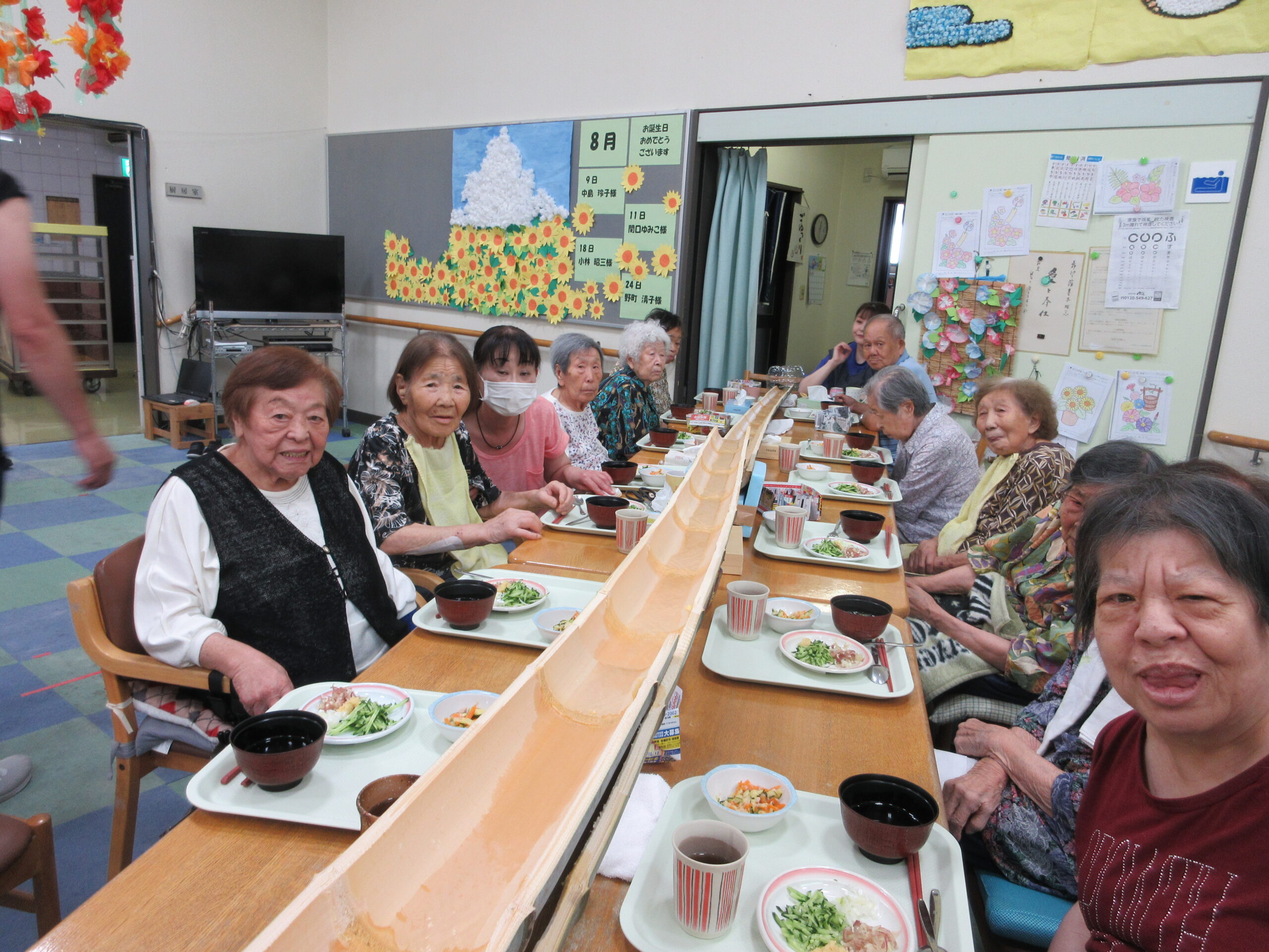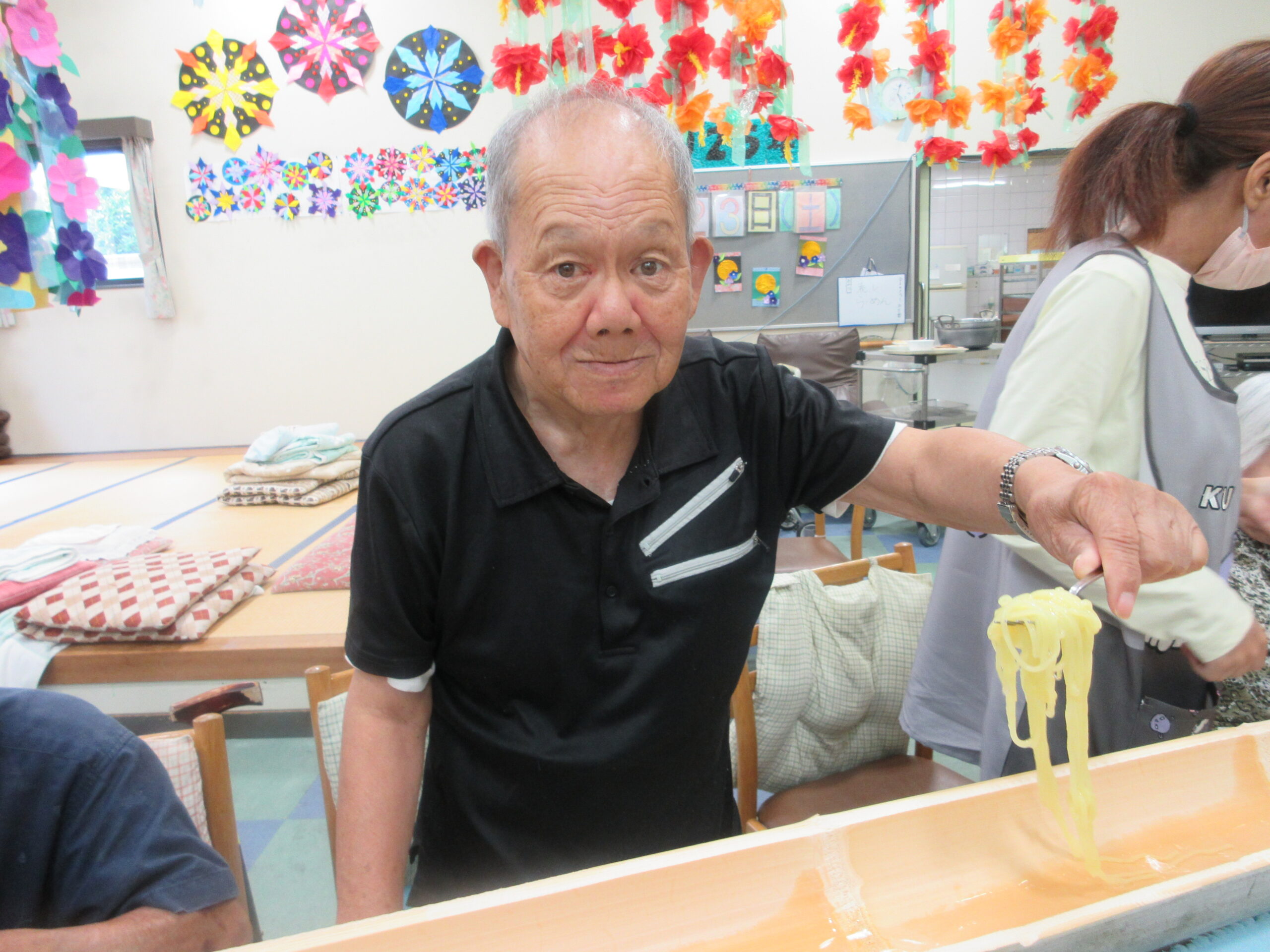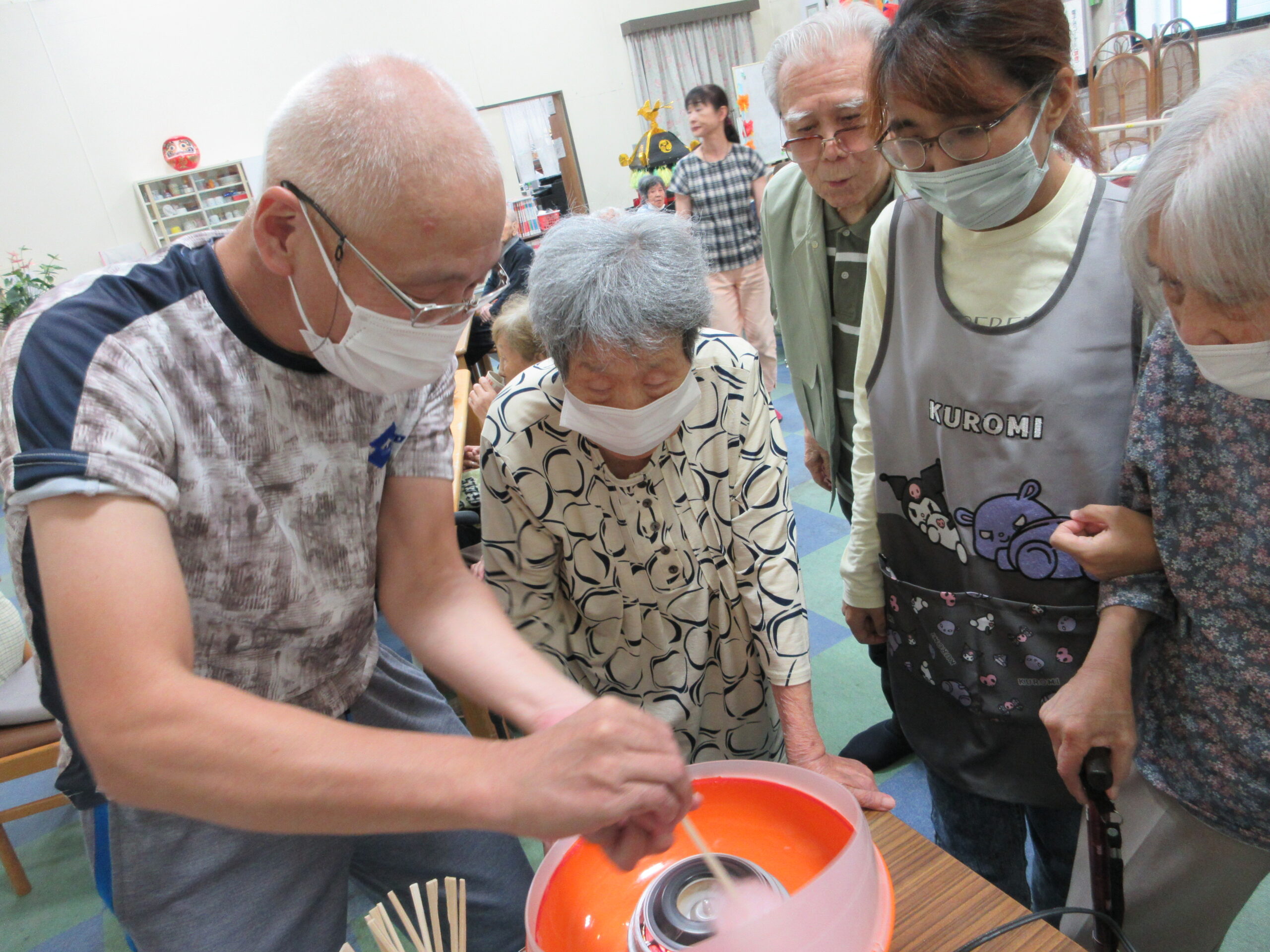 トピックス 2025年10月 ピクニック デイサービス六郷友の家 2025.10.04 9月初旬。まだまだ暑い日が続いているので、公園での昼食はあきらめて、のぞみの園へ出かけました。外の景色を見ながらの昼食、たまにはいいですよね。雨の日はフロアで行いました。午前中から、おにぎりやサンドイッチを作り、おかずはお弁当箱に詰めました。 良い気分転換になったようで、皆様普段より沢山召し上がっていました。 デイサービス六郷友の家 髙栁 納涼祭 デイサービス六郷友の家 2025.10.04 今年もお神輿や出店、ゲームと盛沢山でした。 新たに、らくがきせんべいや、わたあめなども挑戦しました。どれも大好評で、皆さん美味しく召し上がられていました。ゲームも盛り上がり、大成功でした!! デイサービス六郷友の家 髙栁 流しそうめん デイサービス六郷友の家 2025.10.04 夏はやっぱりそうめん! 毎年恒例の揚げたて天ぷらも大好評! お腹いっぱい大満足! デイサービス六郷友の家 髙栁 【しえんほーむだより】2025年10月号[NO.275] 児童家庭支援ホーム希望館 2025.10.05