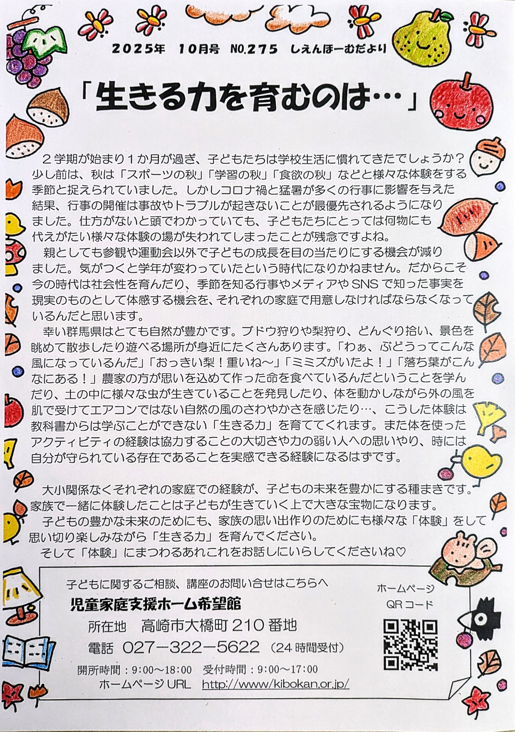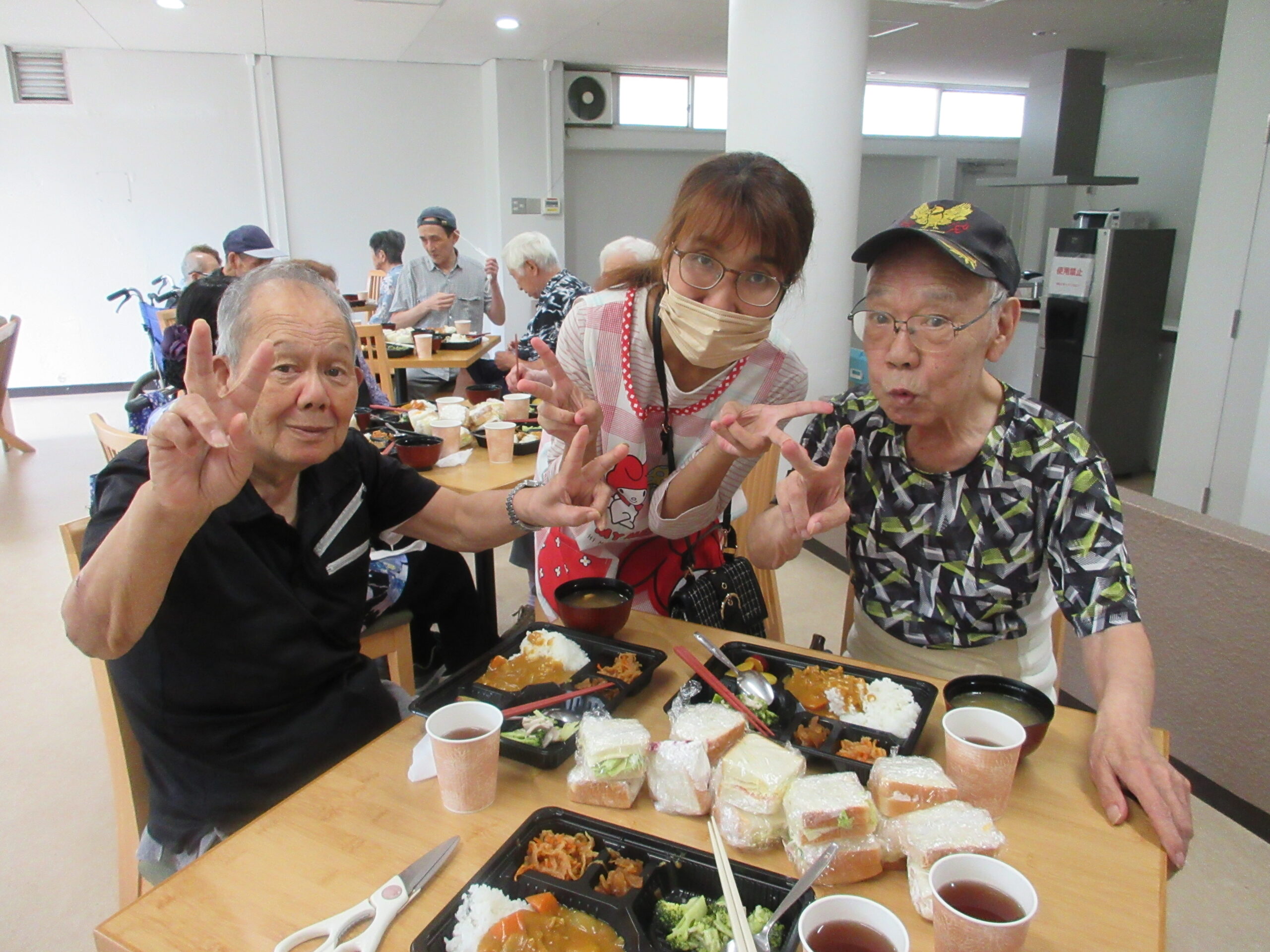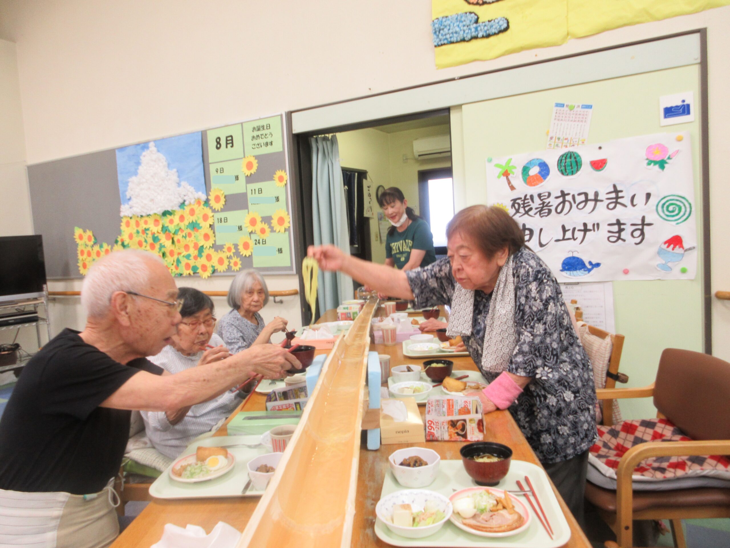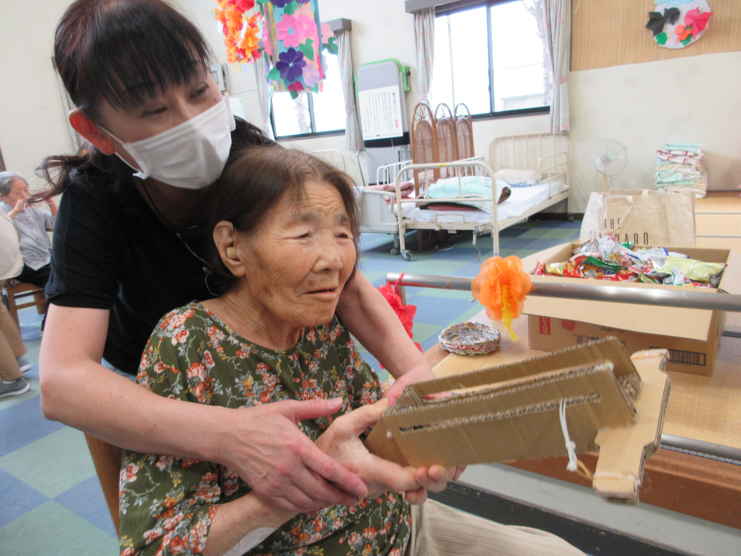 トピックス 2025年10月 ピクニック デイサービス六郷友の家 2025.10.04 9月初旬。まだまだ暑い日が続いているので、公園での昼食はあきらめて、のぞみの園へ出かけました。外の景色を見ながらの昼食、たまにはいいですよね。雨の日はフロアで行いました。午前中から、おにぎりやサンドイッチを作り、おかずはお弁当箱に詰めました。 良い気分転換になったようで、皆様普段より沢山召し上がっていました。 デイサービス六郷友の家 髙栁 納涼祭 デイサービス六郷友の家 2025.10.04 今年もお神輿や出店、ゲームと盛沢山でした。 新たに、らくがきせんべいや、わたあめなども挑戦しました。どれも大好評で、皆さん美味しく召し上がられていました。ゲームも盛り上がり、大成功でした!! デイサービス六郷友の家 髙栁 流しそうめん デイサービス六郷友の家 2025.10.04 夏はやっぱりそうめん! 毎年恒例の揚げたて天ぷらも大好評! お腹いっぱい大満足! デイサービス六郷友の家 髙栁 【しえんほーむだより】2025年10月号[NO.275] 児童家庭支援ホーム希望館 2025.10.05