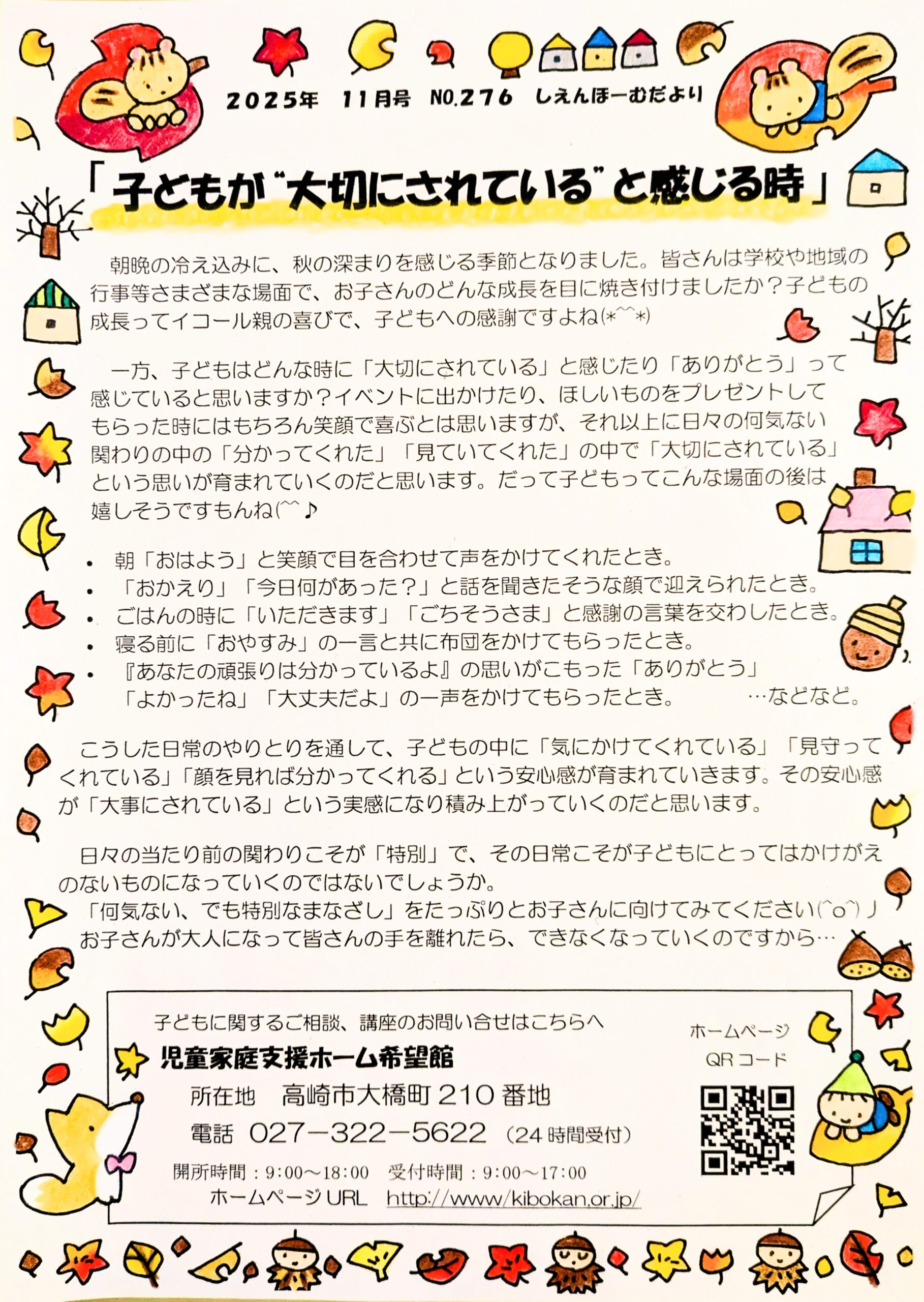 トピックス 2025年11月 【しえんほーむだより】2025.11月号[NO.276] 児童家庭支援ホーム希望館 2025.11.04 「文房具をありがとうございます。」 児童養護施設希望館 2025.11.04 施設の子どもたちのためにとたくさんの文房具をいただきました。子どもたちはいただいた新しい文房具と真心をカバンに詰めて、元気に登校して行きました。 子どもたちを気にかけていただき本当にありがとうございます。(⌒∇⌒) 児童養護施設希望館 箱田久美子
